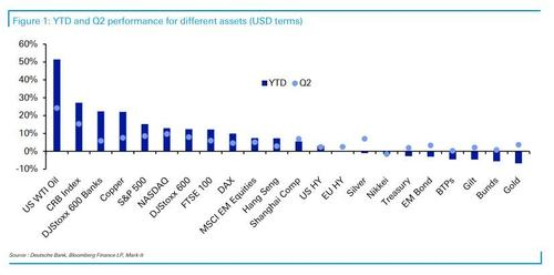 而高盛本次的研报,是在金价上半年走势羸弱的情况下发表的。根据德意志银行的统计,以美元计价的黄金在其追踪的38种非货币资产中上半年表现最差,其中单是6月份就跌了7.2%,创下自2016年11月以来最差单月表现。