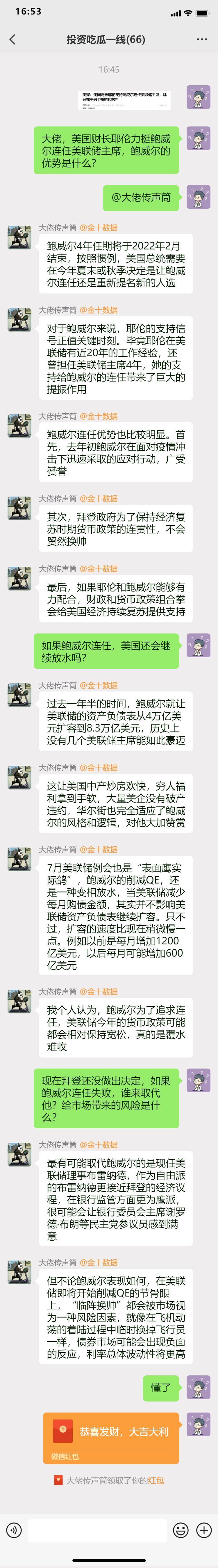 【远大期货】获耶伦力挺,如果鲍威尔连任,美国还会继续放水吗?|美国 来源:远大期货 作者:远大国际期货 时间:2021-08-23 原标题:获耶伦力挺,如果鲍威尔连任,美国还会继续放水吗? 欢迎大家在评论区畅所欲言,下一个回答的可能就是你提出的问题哦~